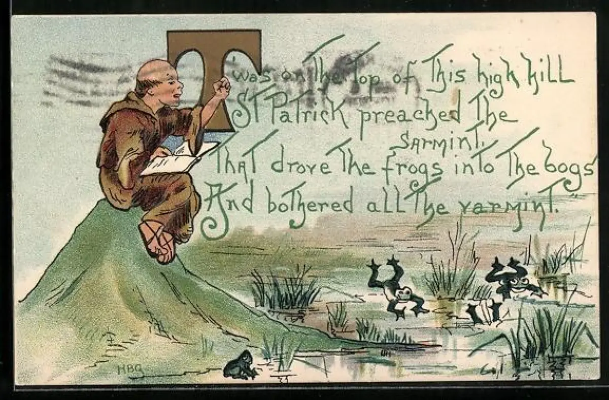 Präge-AK St. Patrick preached the sarmint, that drove the frogs into the bogs, Schutzpatron