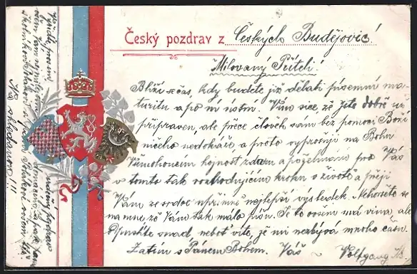 Präge-AK Tschechisches Wappen mit Krone