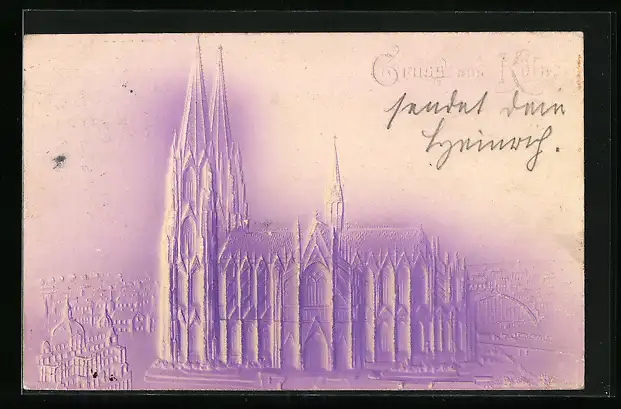 Präge-Künstler-AK Köln, Dom mit Teilansicht
