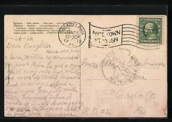 gelaufen 1910, Eckknick re. oben, guter Zustand