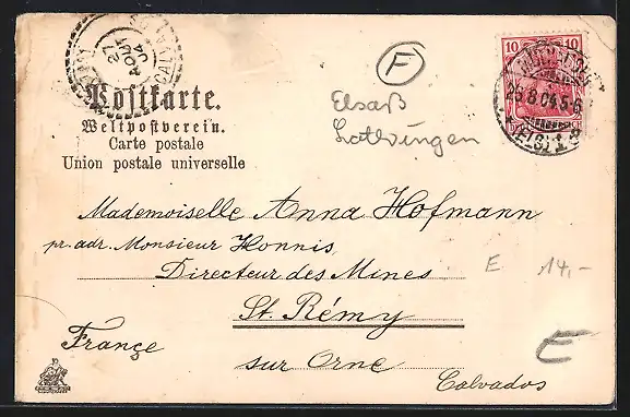 gelaufen 1904, Eckknick oben li., guter Zustand