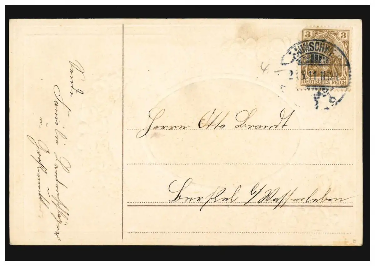 Prägekarte Geburtstag Dorfansicht mit Veilchen-Girlande, Braunschweig 1911