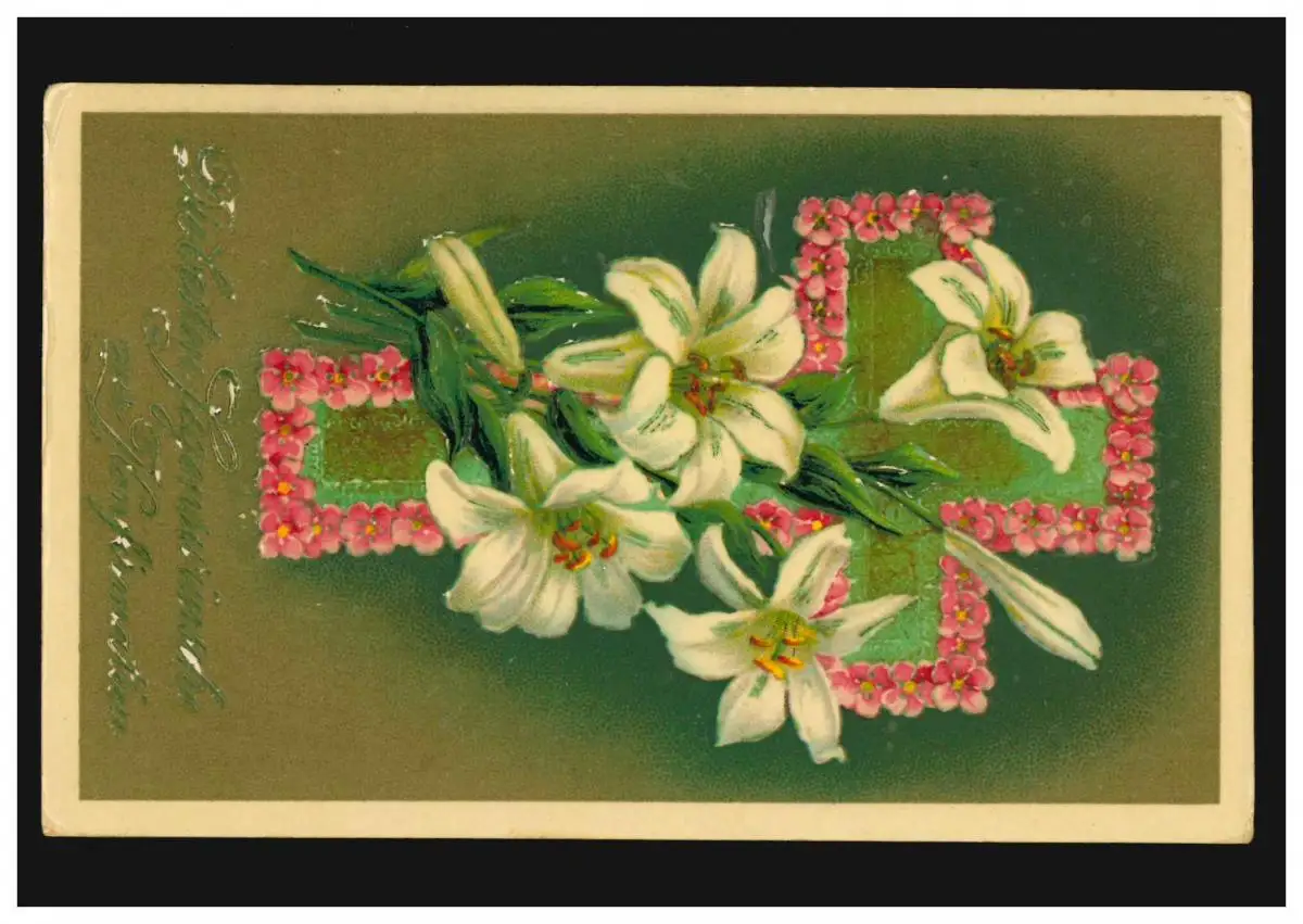 Prägekarte Konfirmation Kreuz mit Blumen, RASTEDE 19.3.1910