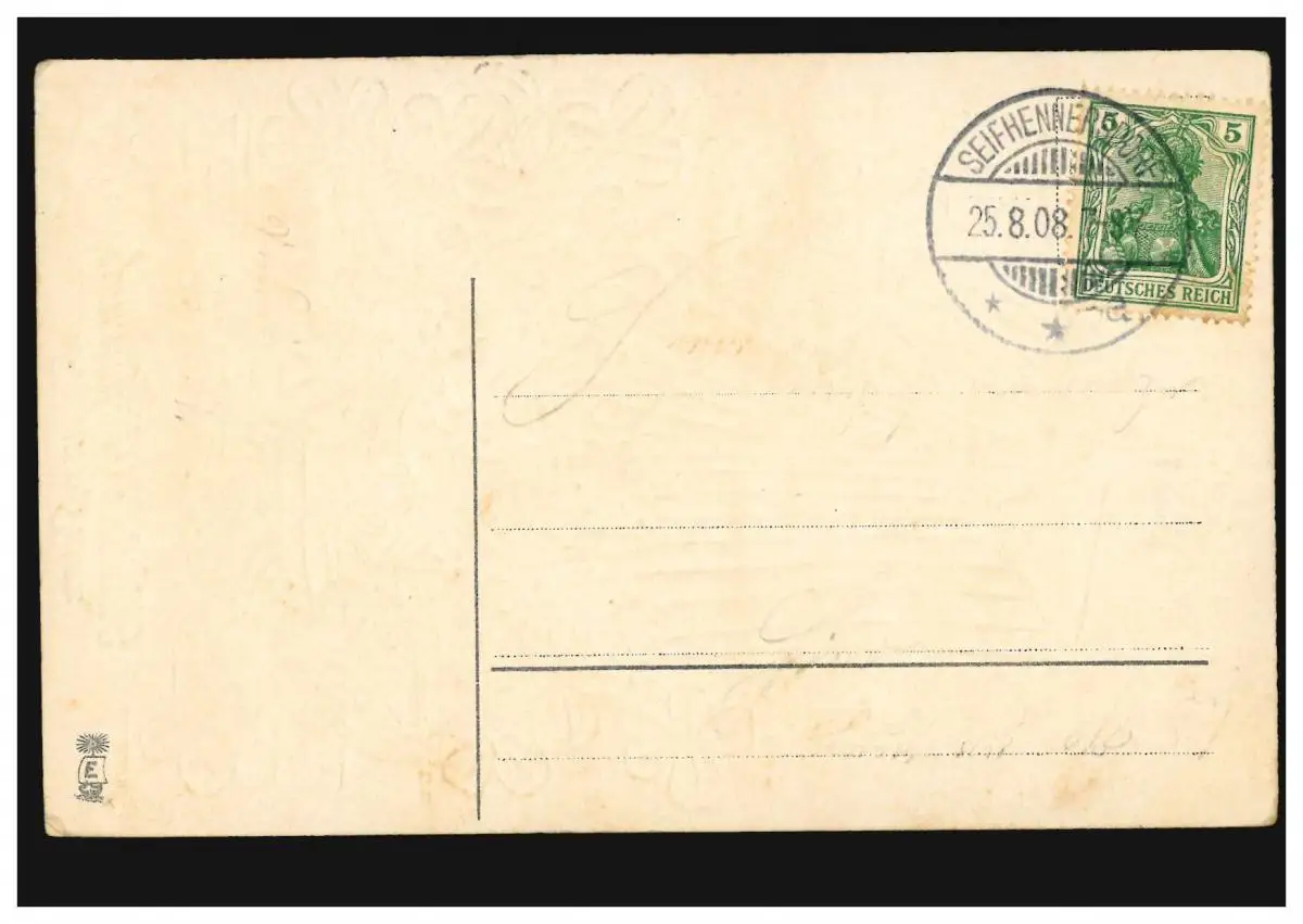 Prägekarte Segelboot voller Glücksklee und Tauben, SEIFHENNERSDORF 25.8.1908