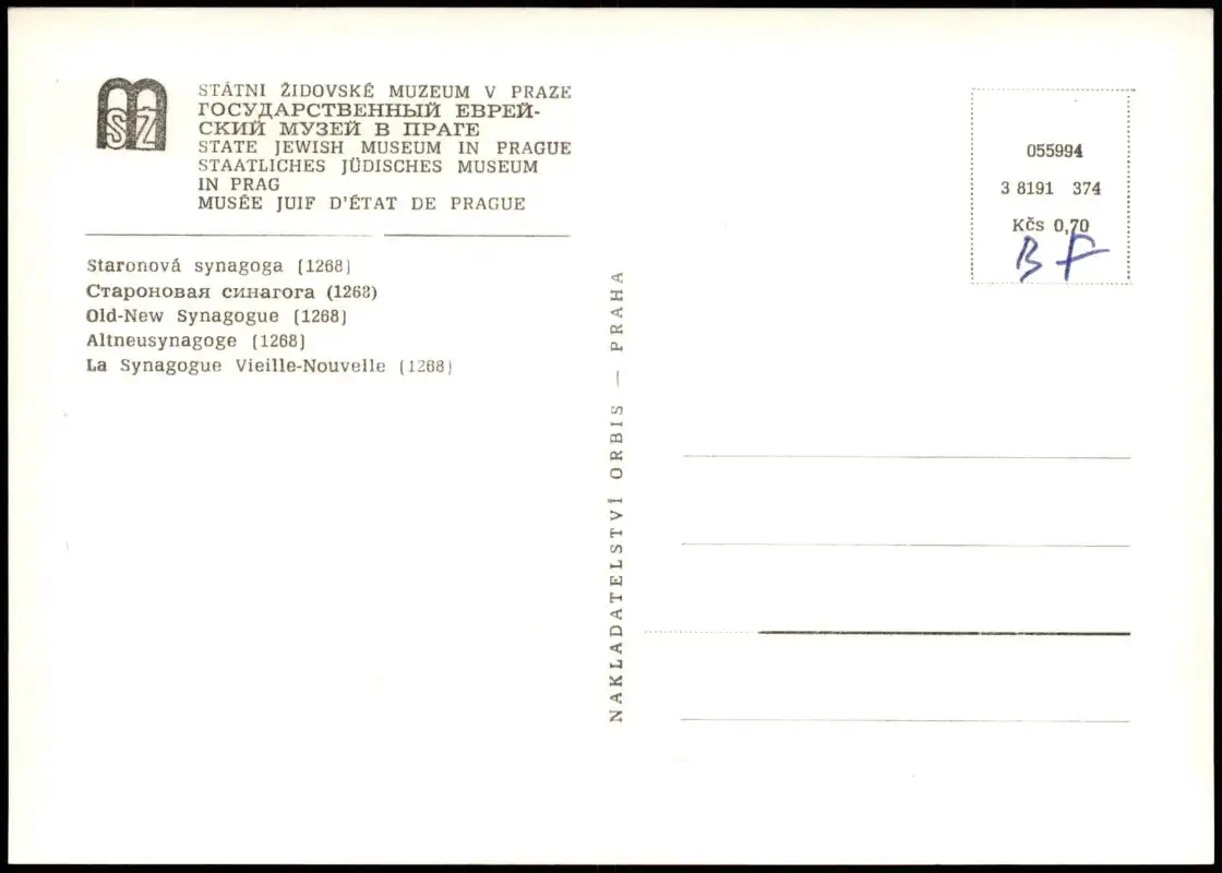 Name: STAATLICHES JÜDISCHES MUSEUM STATE JEWISH MUSEUM IN PRAGUE