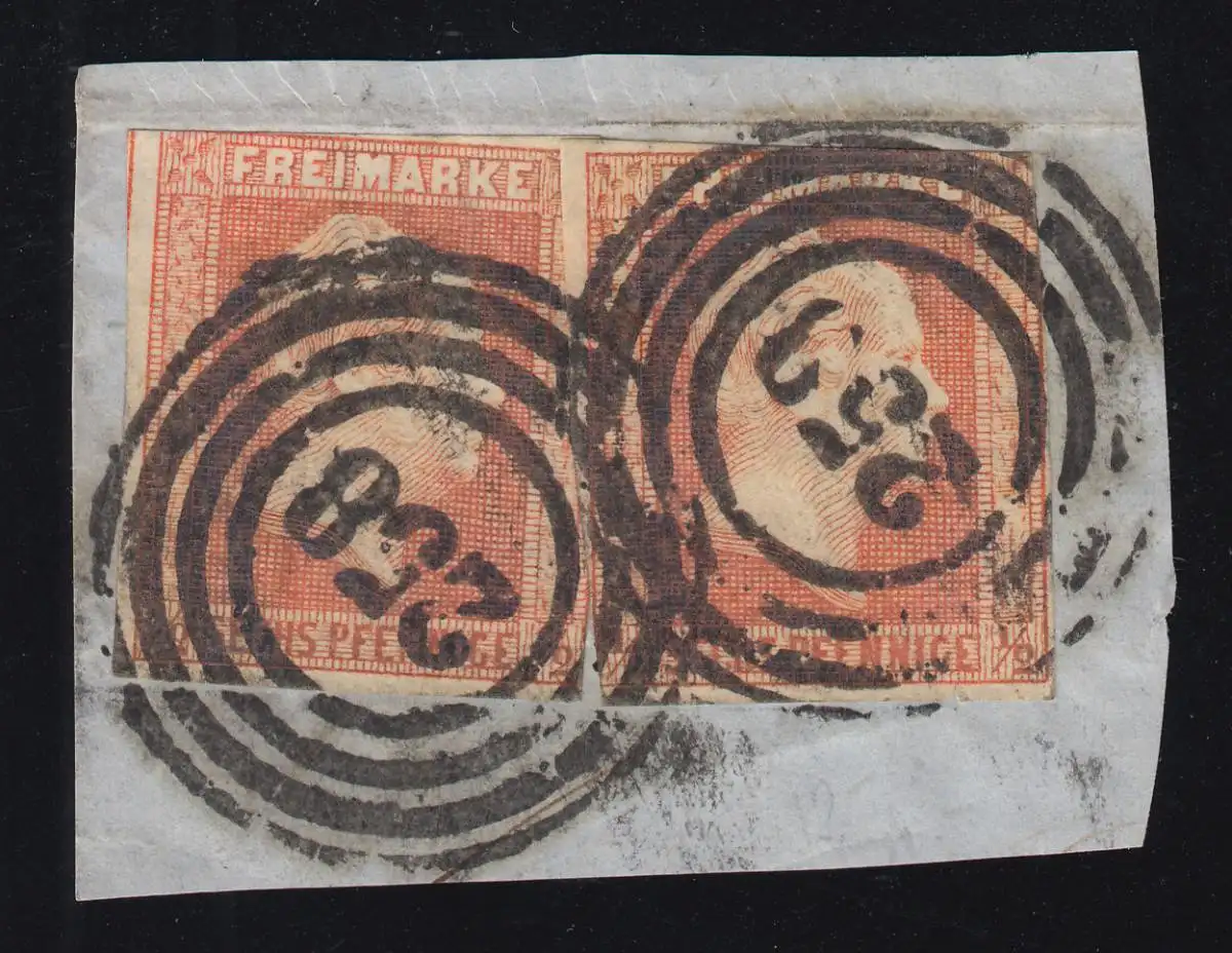 Preußen 1 Freimarke, zweimal auf Briefstück Vierring-O 258, geprüft Brettl BPP
