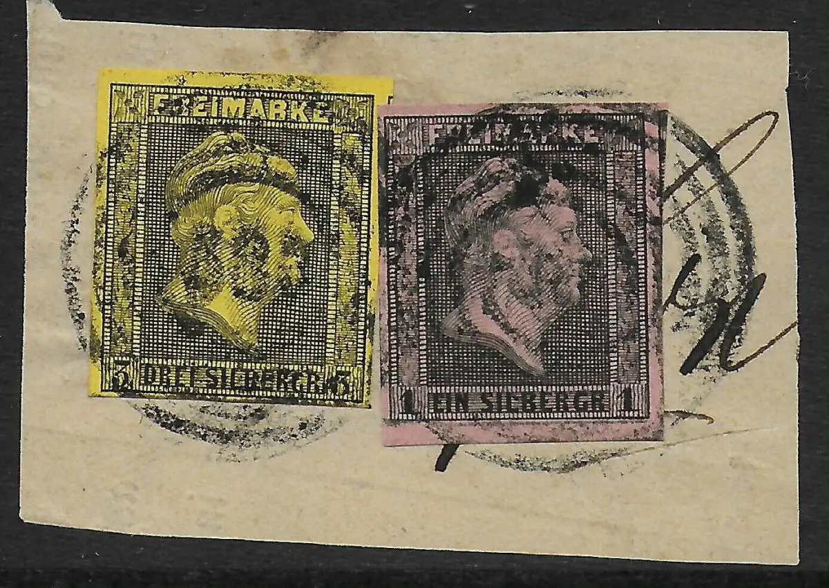 Preußen: MiNr. 2+4 gestempelt auf Briefstück