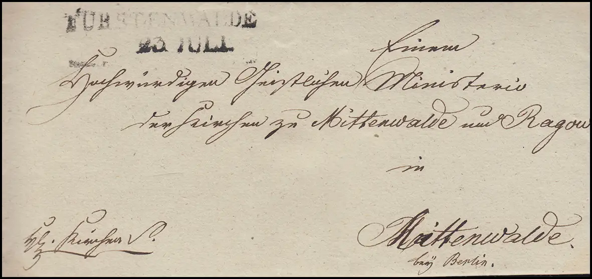 Preußen Vorphilatelie Faltbrief Zweizeiler FÜRSTENWALDE 23.7.1832 n. Mittenwalde