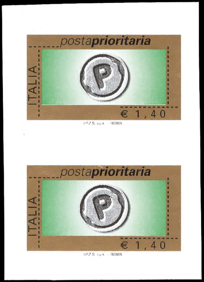 MNH - Vollgummi - - Priority Post Euro 1,40 Ausgabe Nr. 10 Nr. 2932Ab nicht gestanztes vertikales Paar - nicht gelistete Sorte Cod.806/182