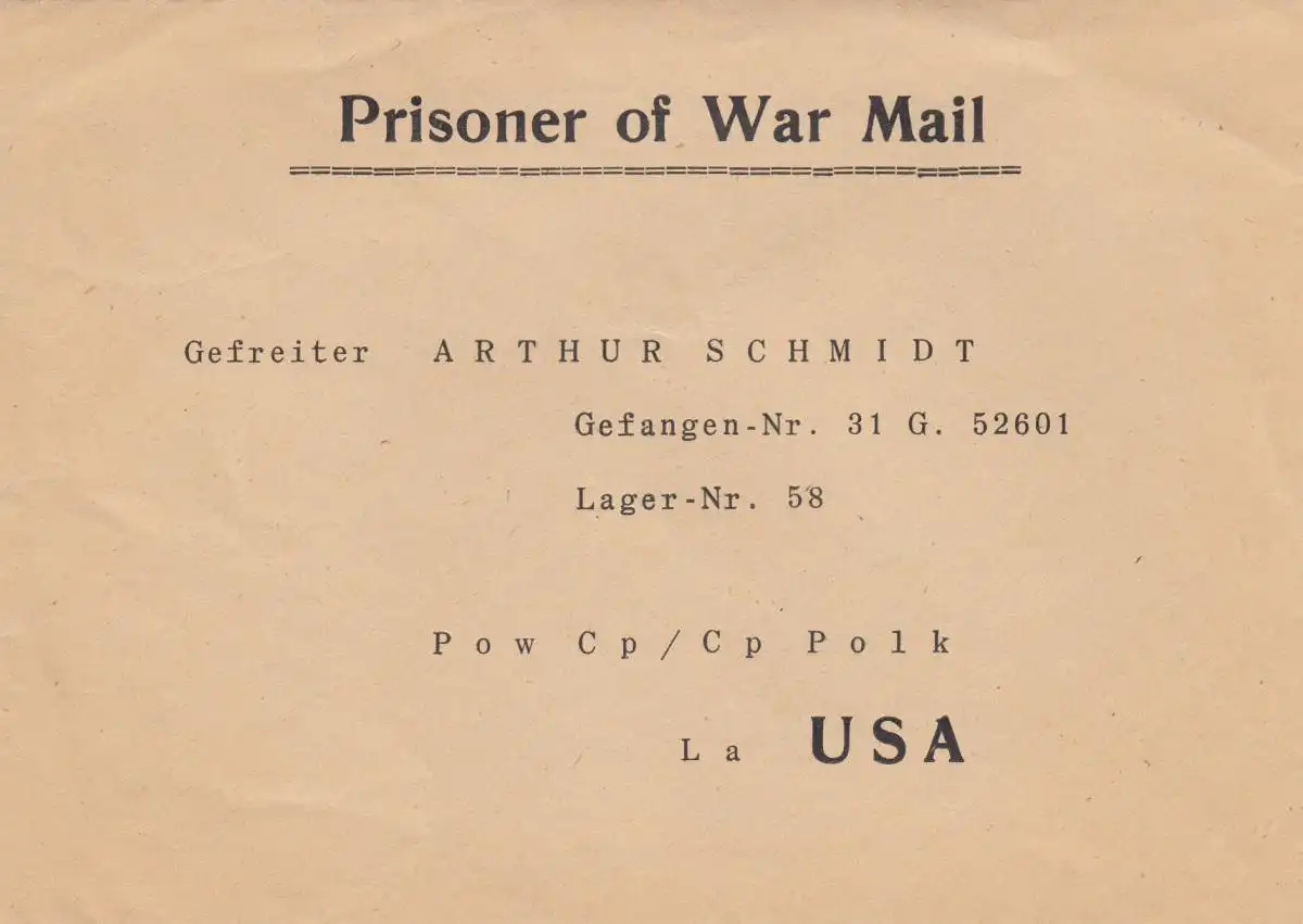Prisoner of War Mail, addressed to camp 58, USA, printed