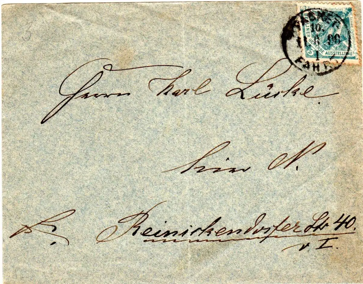 3 Pf. Gewerbeausstellung auf Brief m. senkr. mittiger Faltung (siehe scan).