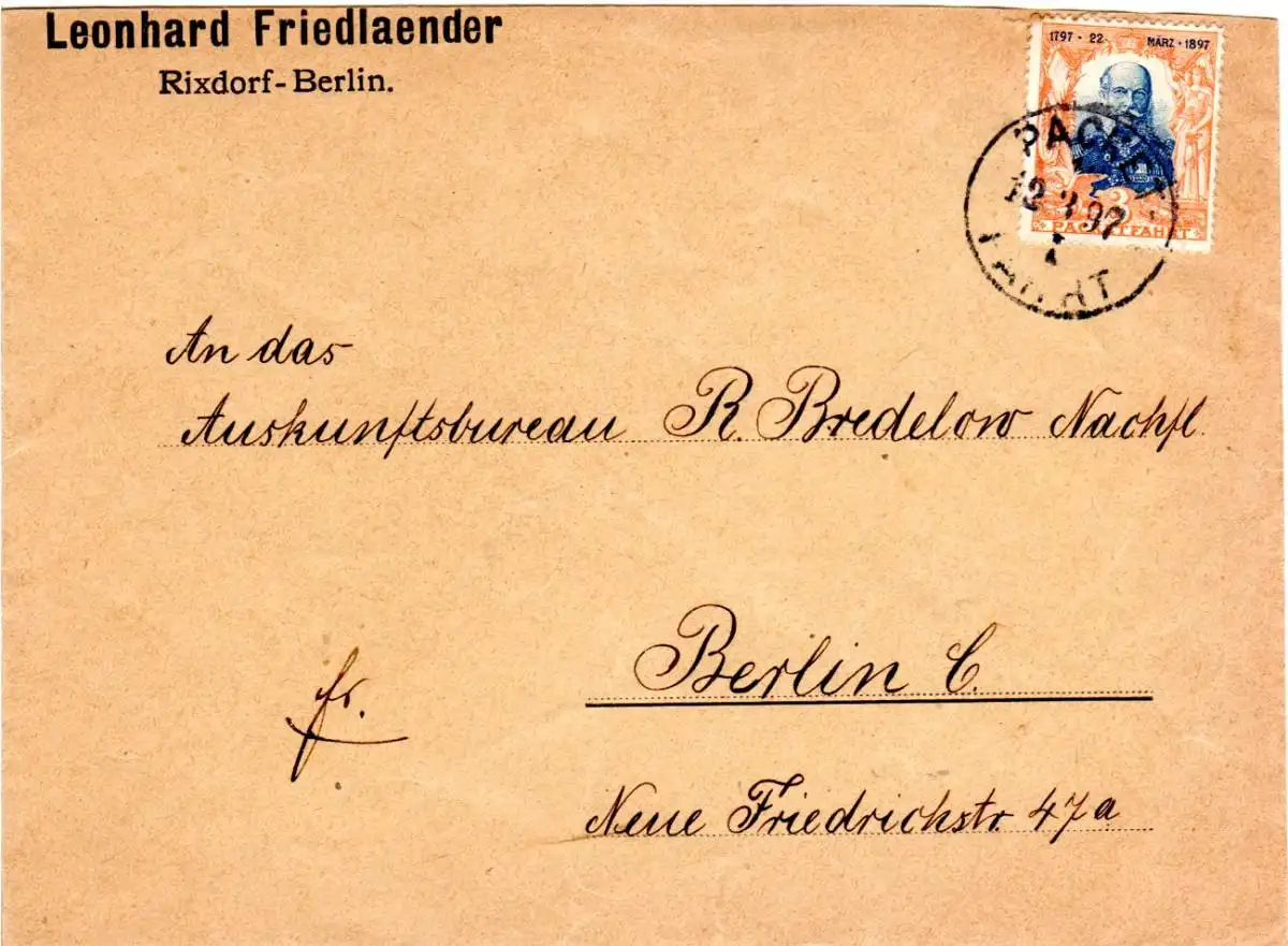 Private Stadtpost Packet-Fahrt Berlin 1897, 3 Pf. Kaiser Jubiläum auf Brief