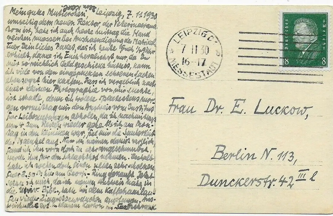 Prof. Dr. Baum, Veterinärmediziner imt Autogramm, Leipzig 1930 nach Berlin, Text