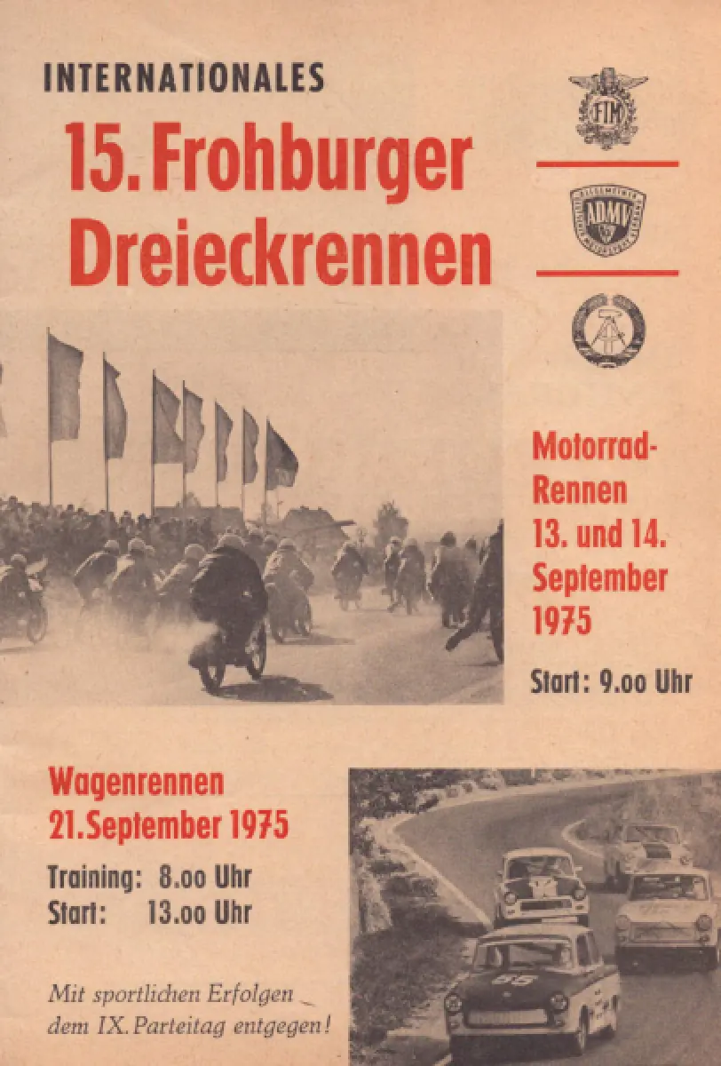 Programm 15. Froburger Dreieckrennen 1975