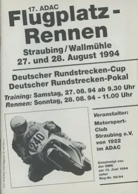 Programm 17. Flugplatzrennen Straubing 27./28.8.1994
