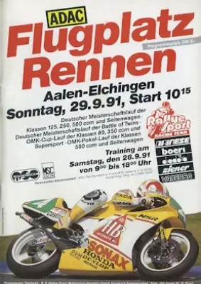Programm Flugplatzrennen Aalen-Elchingen 28./29.9.1991