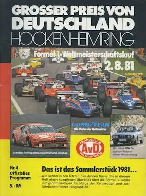 Programm Hockenheimring F 1 2.8.1981