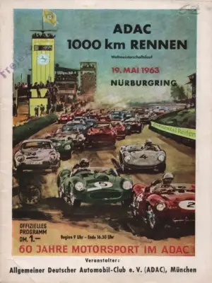 56 Seiten DinA 5 Int. und Nat. Meisterschaftsläufe 1000 km für Sport- und Rennwagen Leichte Gebrauchsspuren