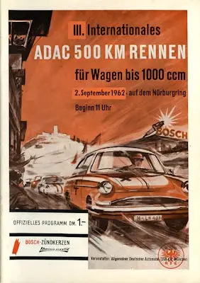 36 Seiten DinA 5 III. Int. ADAC 500 km Rennen für Wagen bis 1000 ccm Guter Zustand