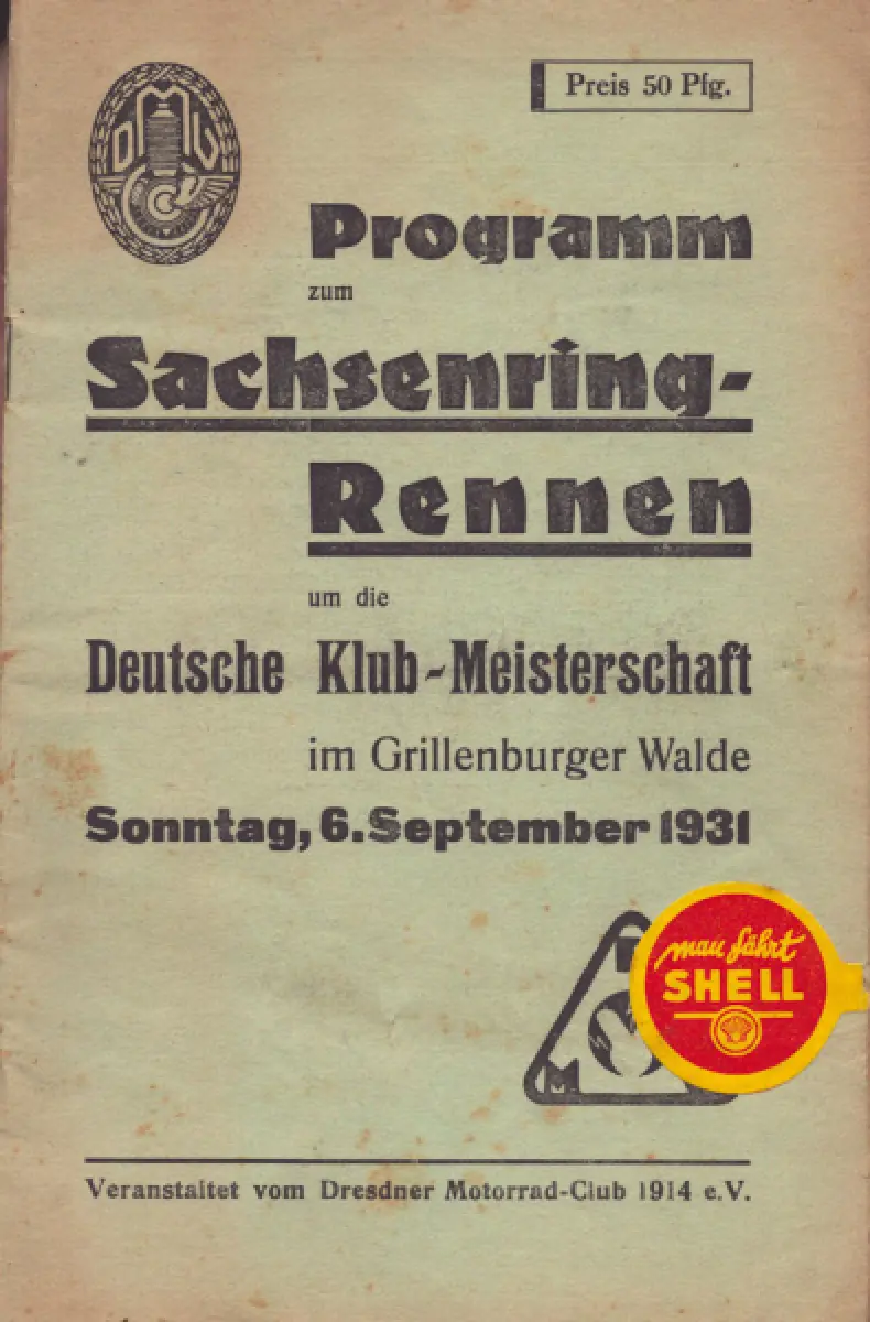 Programm Sachsenringrennen im Grillenburger Walde 6.9.1931