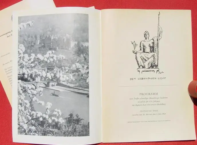 Programm zum Treffen ehemaliger Heidelberger Studenten anlaesslich der 575-Jahrfeier der Ruprecht-Karl-Uni Heidelberg im Mai 1961. 28 Seiten