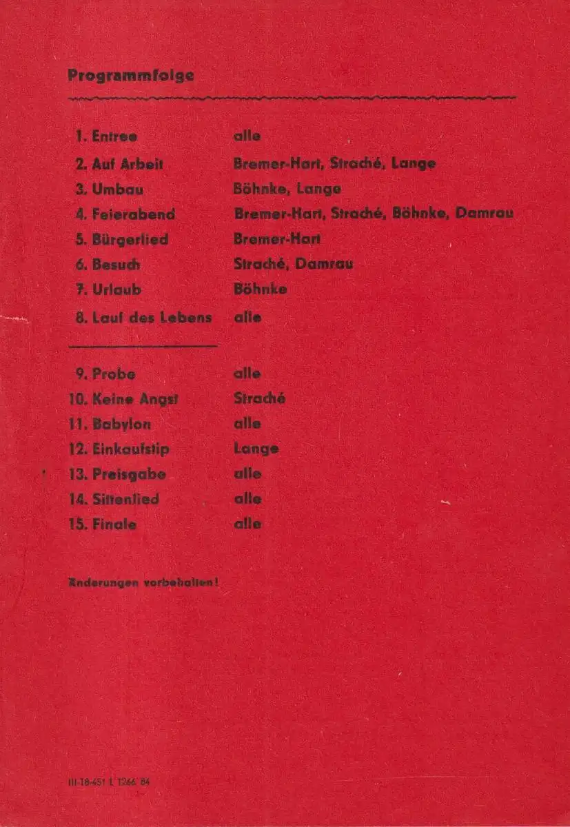 Kabarett academixer Leipzig, 1984. 20,0 x 14,0 cm, Leporello