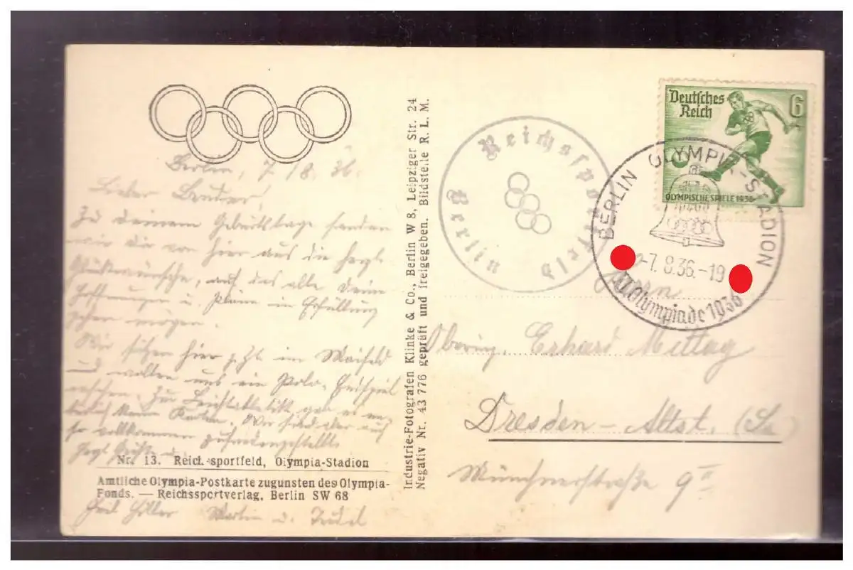 [Propagandapostkarte] DT- Reich (021176) Propagandakarte Olympia-Postkarte Berlin, Reichssportfeld, Olympia Stadion, gel. SST Berlin 7.8.1936.