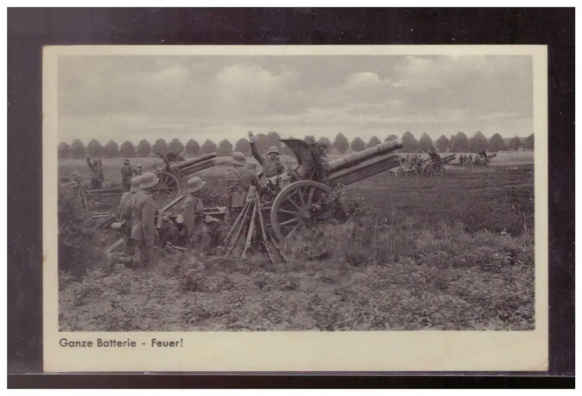 Titel: DT-Reich (023398) Propagandakarte Geschütz in Feuerstellung, Ganze Batterie- Feuer, gelaufen 1939