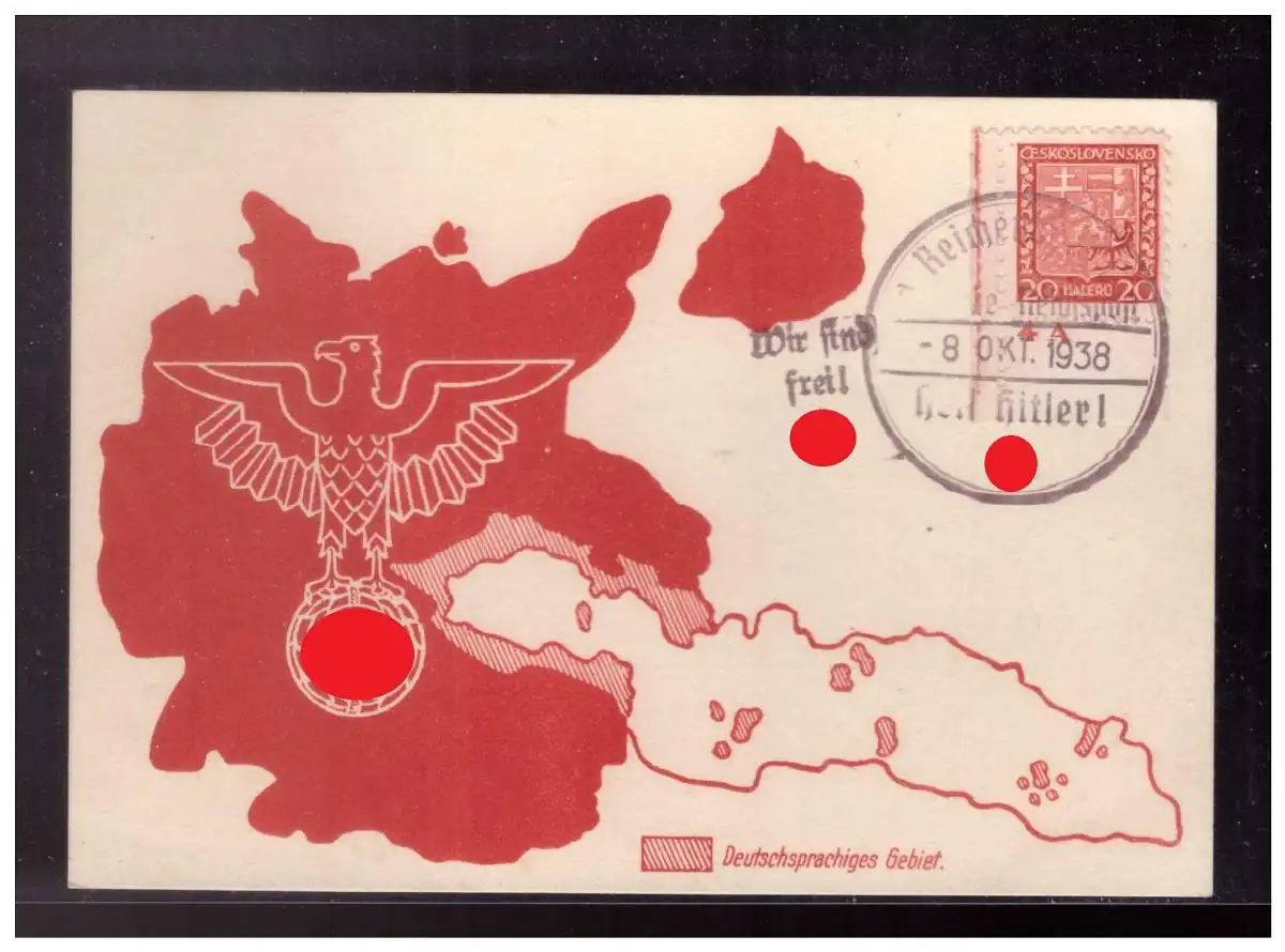 Titel: DT-Reich (023424) Propaganda Postkarte Wir sind frei! blanco gestempelt Reichenberg 8.10.1938 Heil Hitler!
