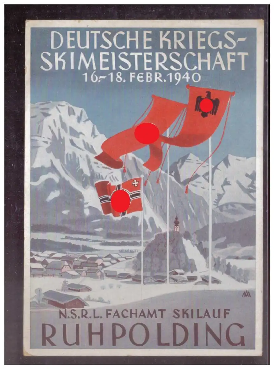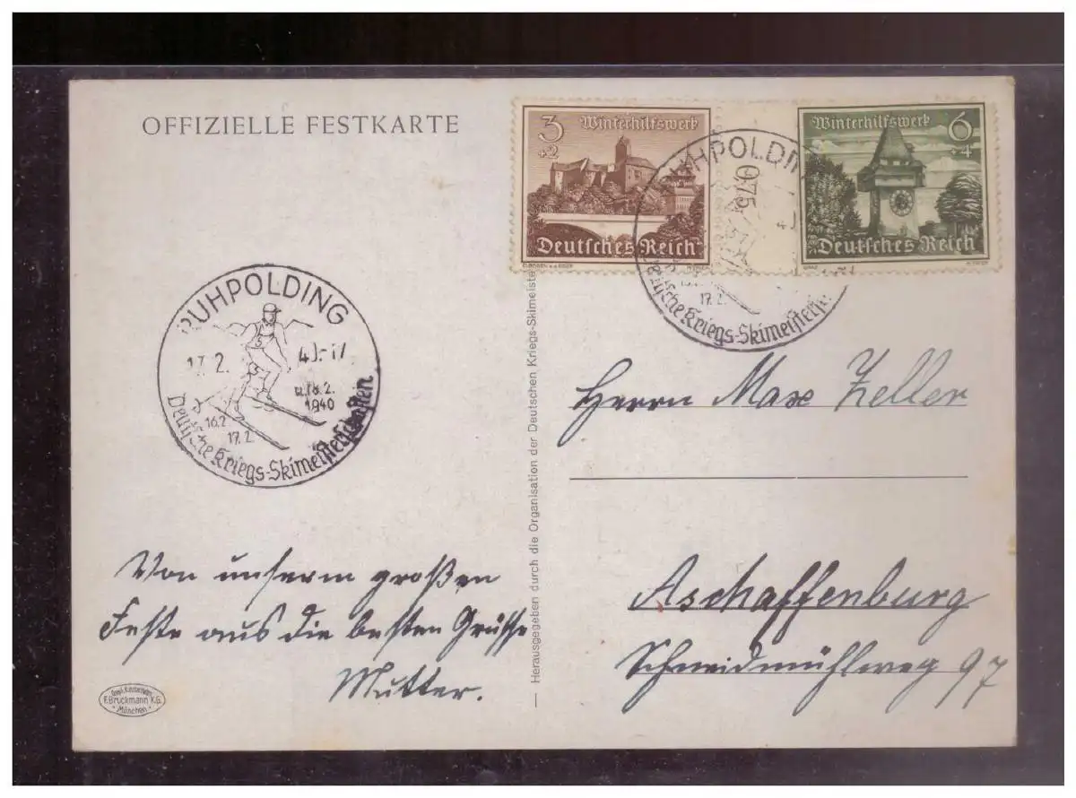 Titel: DT- Reich (W00286) Propagandakarte Deutsche Kriegsskimeisterschaft Ruhpolding 1940, gelaufen mit passenden SST
