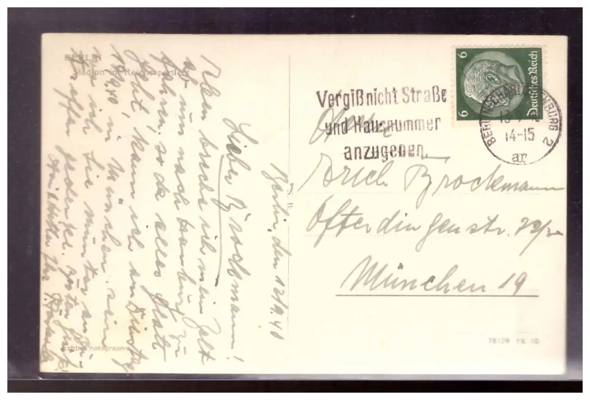 Titel: Dt- Reich (020712) Propaganda AK Berlin Olympia 1936, Berlin Olypiastadion, gelaufen 1940 Berlin