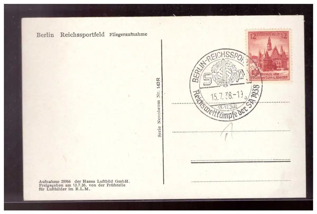 Titel: Dt- Reich (020717) Propaganda AK Berlin, Berlin Reichssportfeld, Fliegeraufnahme mit SST Berlin Reichsportfeld 15.7.1938