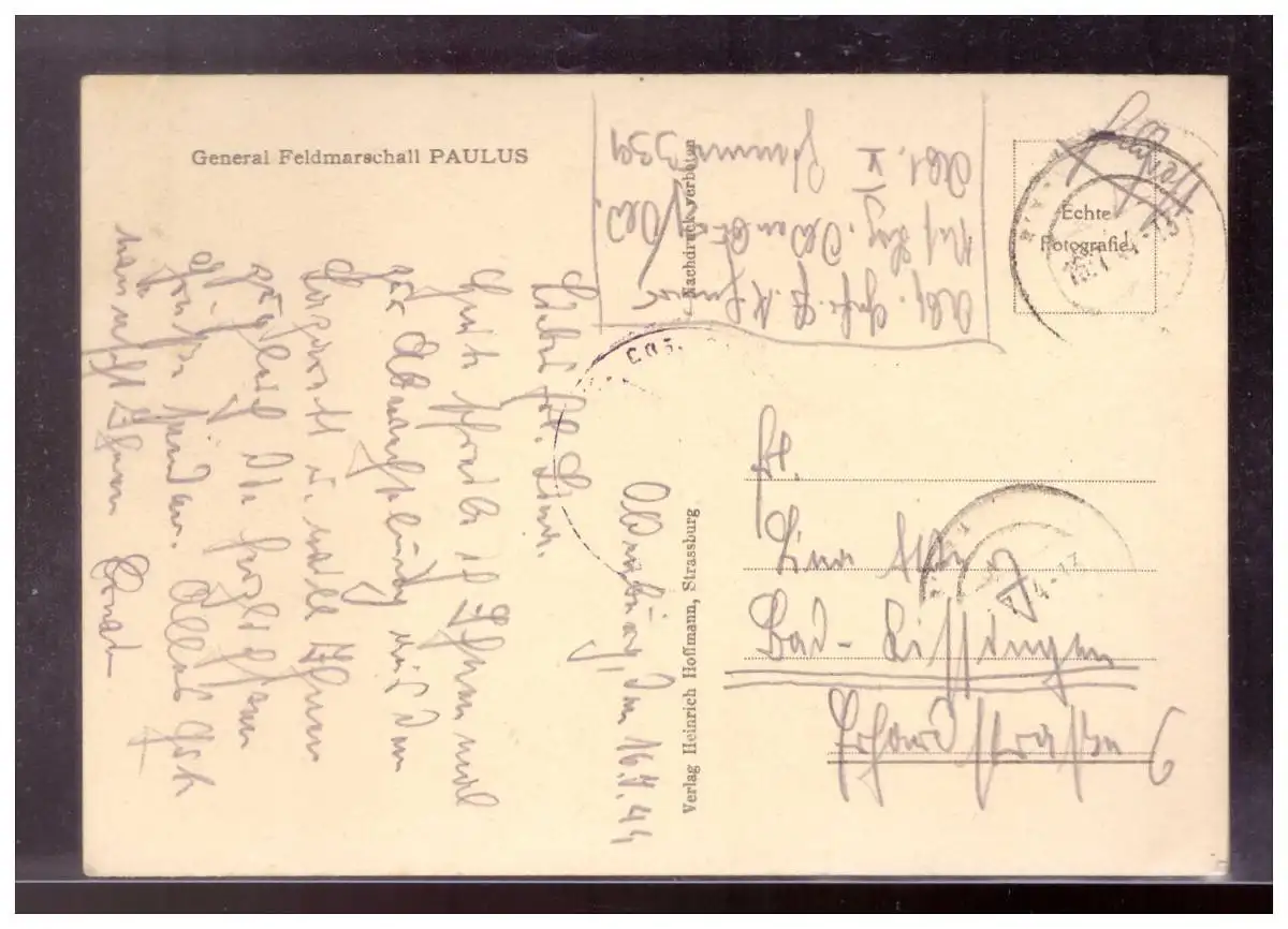 Titel: Dt.- Reich (022436) Propagandakarte General Feldmarschall Paulus, gelaufen mit Feldpost