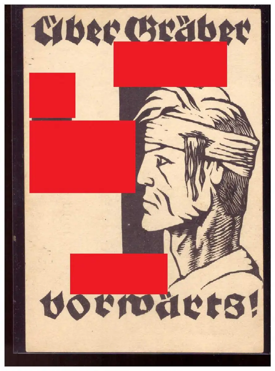 [Propagandapostkarte] Dt- Reich (022616) Propagandakarte Über Gräber vorwärts!, ungebraucht, Linolschnitt von Willi Kiendl.