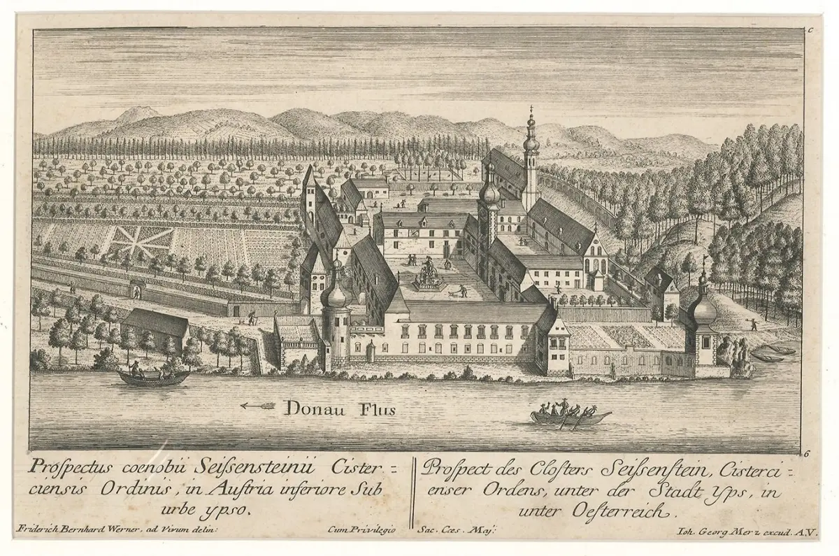 Bemerkungen: Nebehay-W. 1185, 6 - Von Johann Georg Merz (1694-1762) nach Entwürfen von Friedrich Bernhard Werner (1660-1769) gestochene Ansicht des Stiftes Säusenstein.