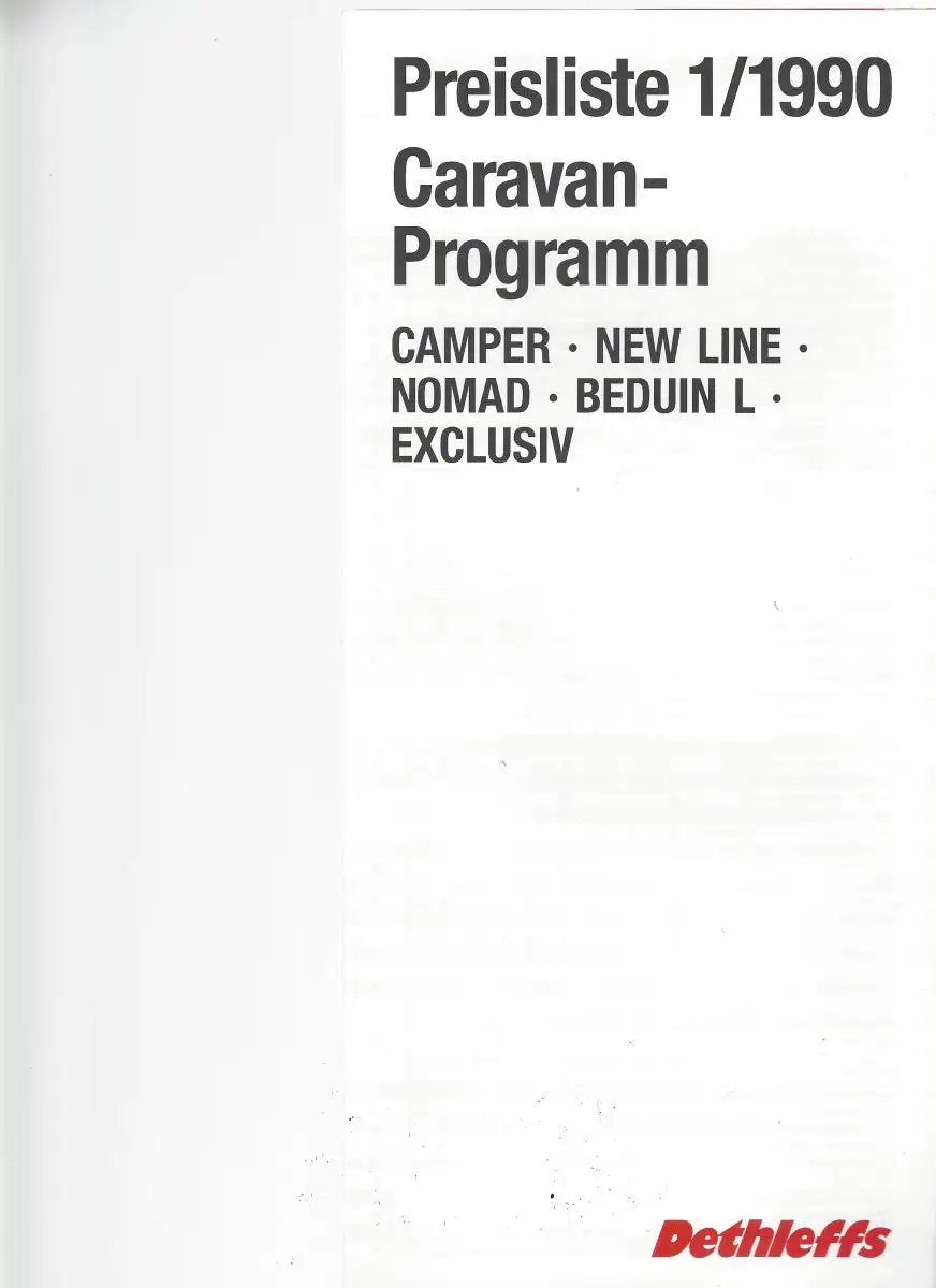 Titel: Prospekt Dethleffs Caravans 1990. Mit Preisliste