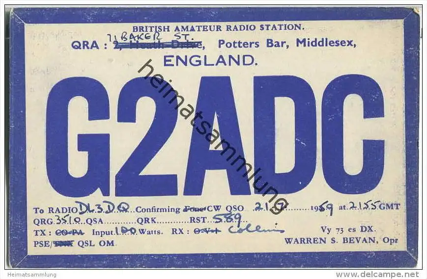 QSL - QTH - Funkkarte - G2ADC - Great Britain - Potters Bar - 1959