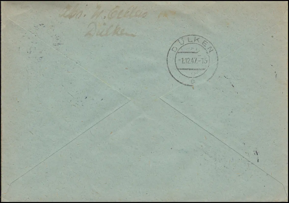 R-Brief MiF Kontrollrat I+II Not-R-Zettel Viersen 1.12.47 nach Dülken 1.12.