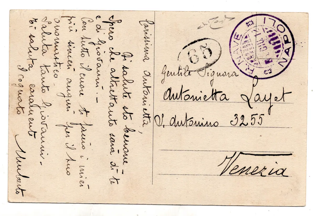 - R.N. Napoli - Freigestellte Postkarte nach Venedig am 5.6.12 - Jahr. Schiffsguller in sehr scharfem Violett - Ungewöhnlich - Ray. n. 150/19