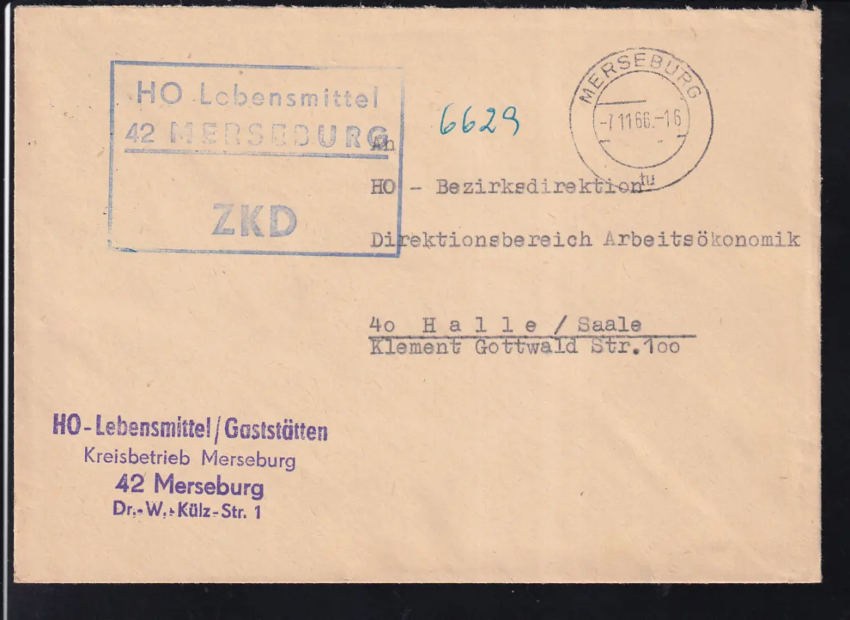 R3 HO Lebensmittel 42 MERSEBURG ZKD auf Brief