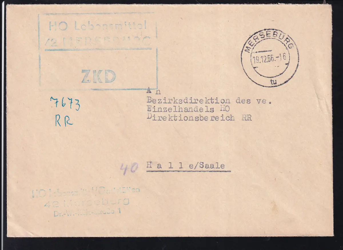 R3 HO Lebensmittel 42 MERSEBURG ZKD auf Brief