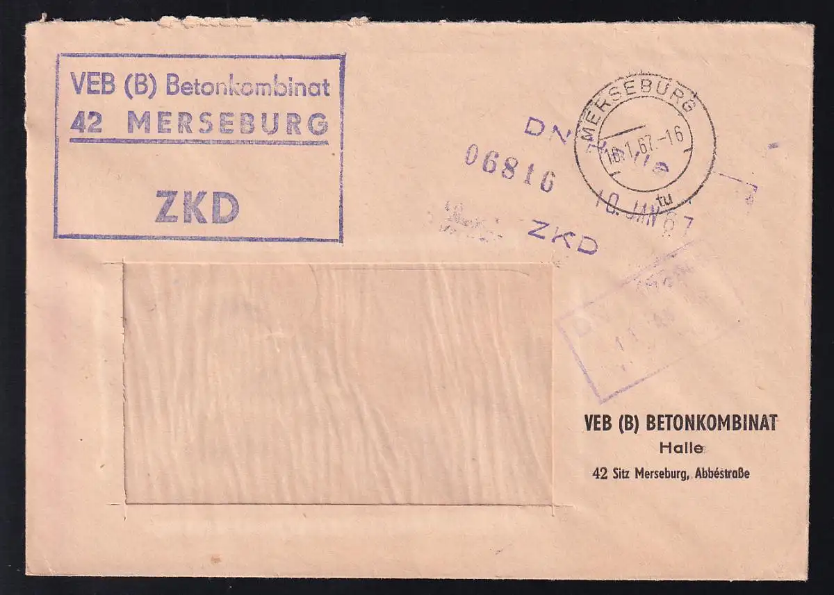 R3 VEB (B) Betonkombinat 42 MERSEBURG ZKD auf Fensterbrief