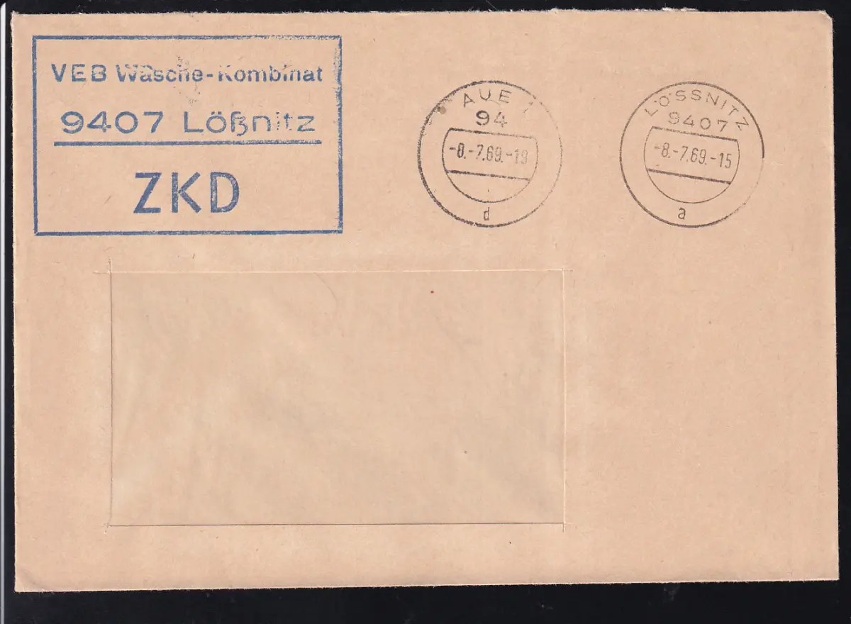 R3 VEB Wäsche-Kombinat 9407Lößnitz ZKD auf Fensterbrief