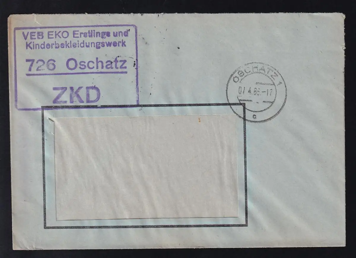 R4 VEB EKO Erstlings und Kinderbekleidungswerk 726 Oschatz ZKD auf Fensterbrief