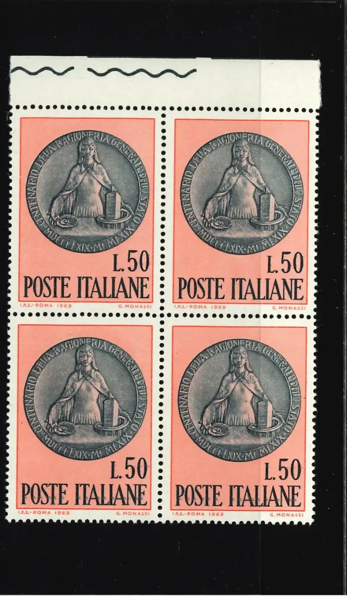 MNH - Vollgummi - RAGIONERIA 50 L. VIERTELZEILE SCHWARZE FARBE UNTEN Cod. ITAV_0163