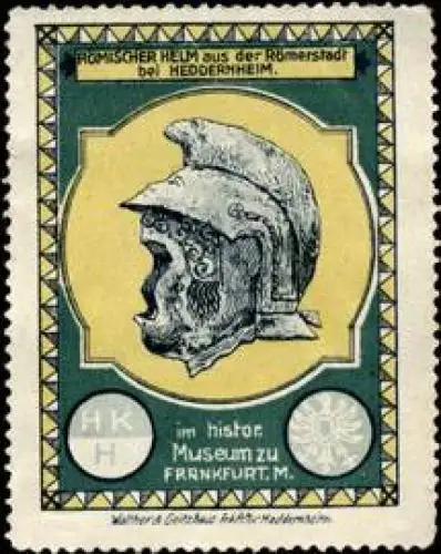 aus der Römerstadt bei Heddernheim im historischen Museum zu Frankfurt am Main, Größe/Zustand: 6x5 , guter Zustand, Original alte Reklamemarke die seinerzeit für die Werbung benutzt wurde