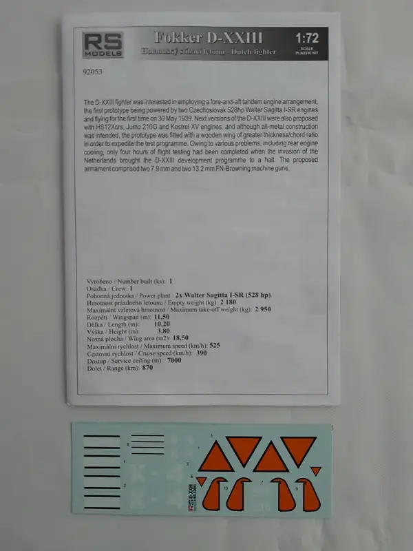 RS Models Fokker D-XXIII-1:72-92053-Modellflieger-OVP-1131