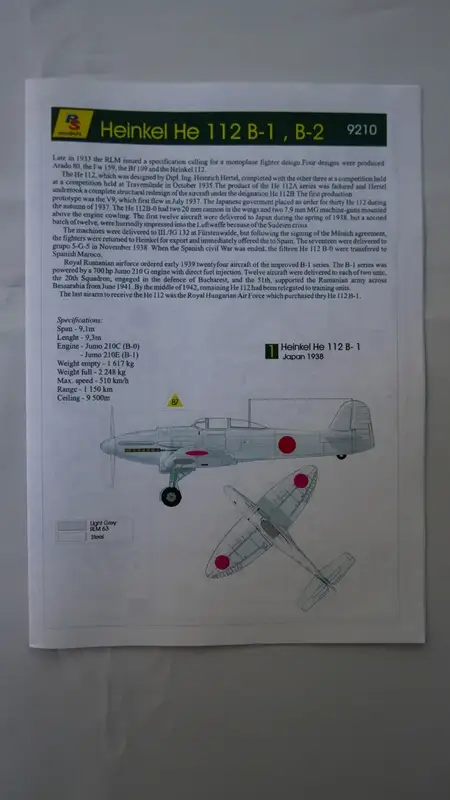 RS Models Heinkel 112 B-1:72-9210-Bauteile versiegelt-Modellflieger-OVP-0938