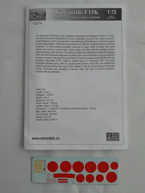 RS Models Kawanishi E15K1 "Shiun"-1:72-92076-Modellflieger-OVP-1128