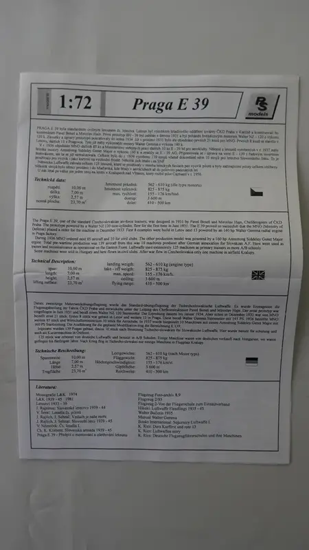 RS Models Praga E 39-1:72-9202-Bauteile versiegelt-Modellflieger-OVP-0783